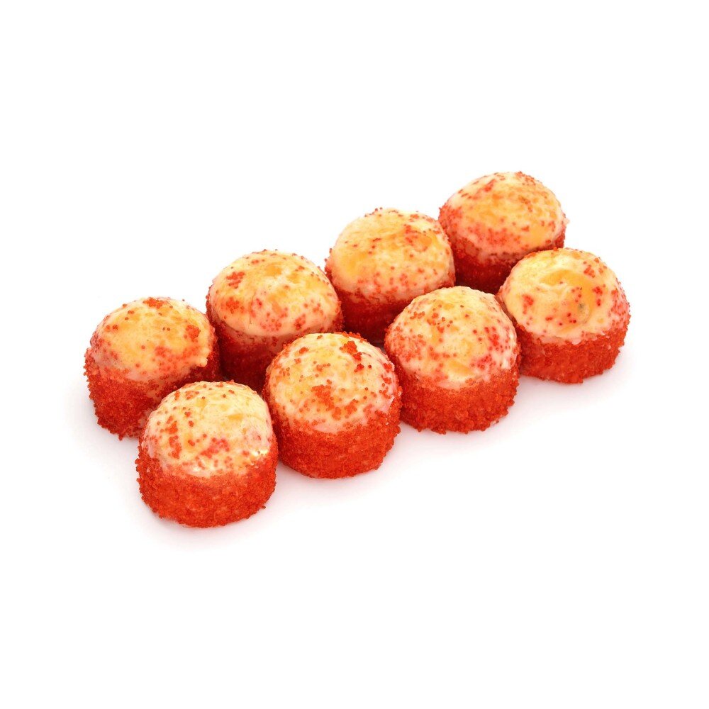 Рис, нори, сыр творожный, тамаго, креветка, икра масаго, соус для запекания, соус сладкий манго чили