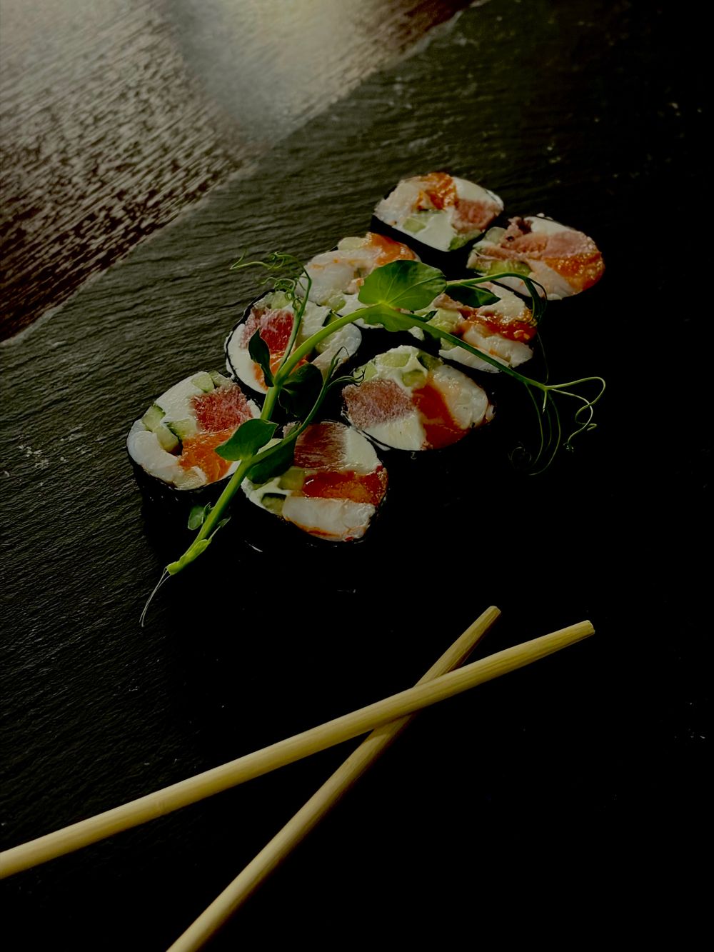 Нори, сыр творожный, огурец, лосось, тунец, икра масаго, креветка