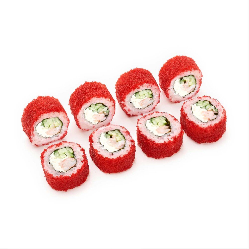 Рис, нори, сыр творожный, огурец, креветка, икра масаго, микрозелень