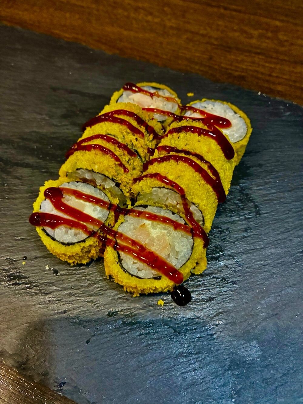 Рис, нори, сыр творожный, тунец, кляр, сухари панировочные, соус унаги